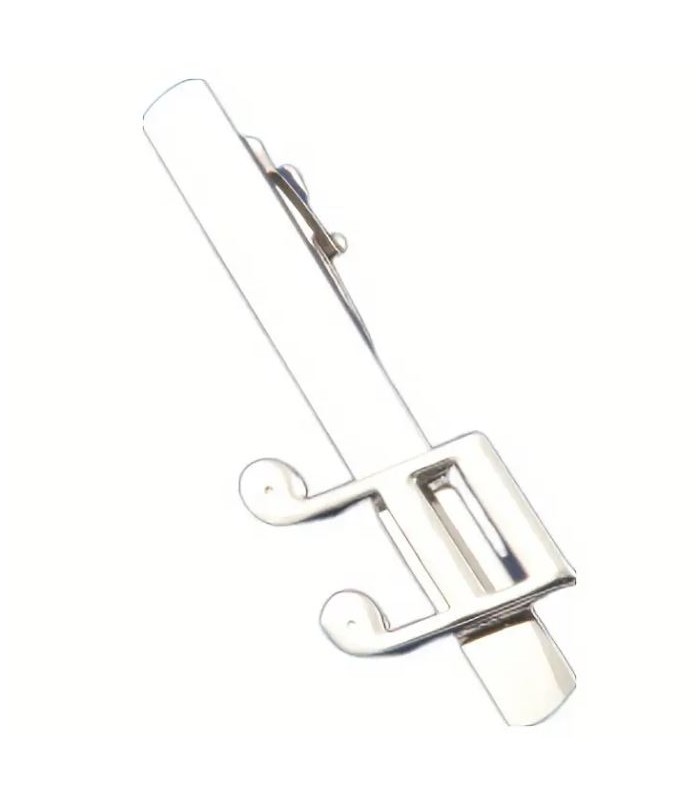 Stylowa spinka do krawatuo długości 6,5 cm, wykonana z metalu w eleganckim srebrnym kolorze. Doskonały dodatek do męskiej garderoby i idealny prezent dla miłośników muzyki i elegancji.