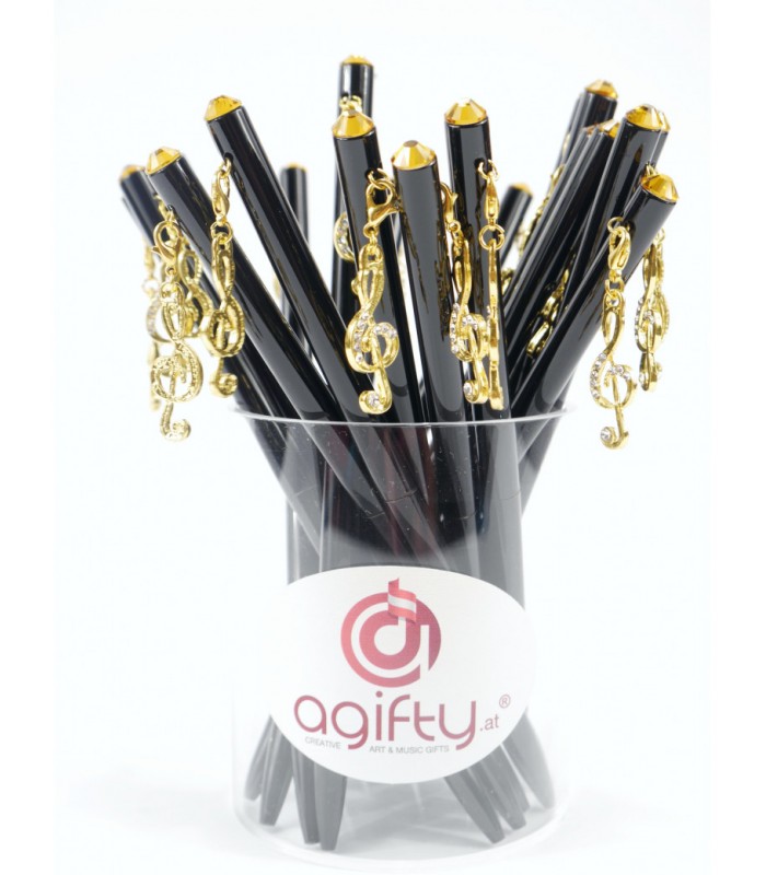 Elegancki długopis z charmsem w kształcie klucza wiolinowego lub nutki. Dostępny w kolorze srebrnym lub złotym. Idealny dla miłośników muzyki, doskonały na prezent. Wysoka jakość wykonania, stylowy design i praktyczność w jednym. Uroczy dodatek do każdej kolekcji.