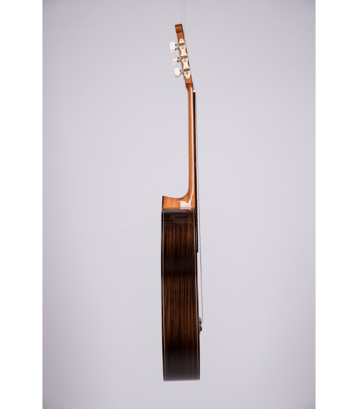 Szyjka z cedru i Bocote, siodełko i strunnik z kości gwarantują precyzyjne brzmienie. Ręczne ustawienie przez bawarskich lutników przed sprzedażą to gwarancja jakości, a specyfikacje, takie jak szerokość siodełka 52mm, szerokość na XII progu 62mm i menzura 650mm, zapewniają komfort i wszechstronność gry.