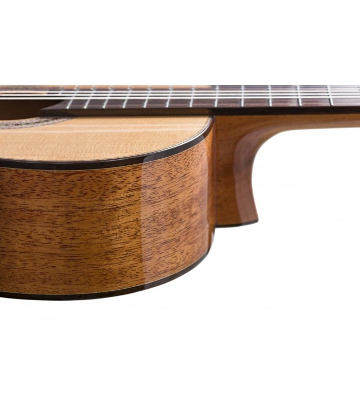 Płyta wierzchnia wykonana z litego cedru zapewnia ciepłe, bogate i pełne ekspresji brzmienie. Tył i boki z litego mahoniu nadają instrumentowi głębię oraz rezonans. Gryf z cedru z palisandrowym wzmocnieniem i podstrunnica z palisandru wschodnioindyjskiego gwarantują wygodę gry oraz trwałość. Kościane siodełko i mostek dodatkowo poprawiają przenoszenie dźwięku.