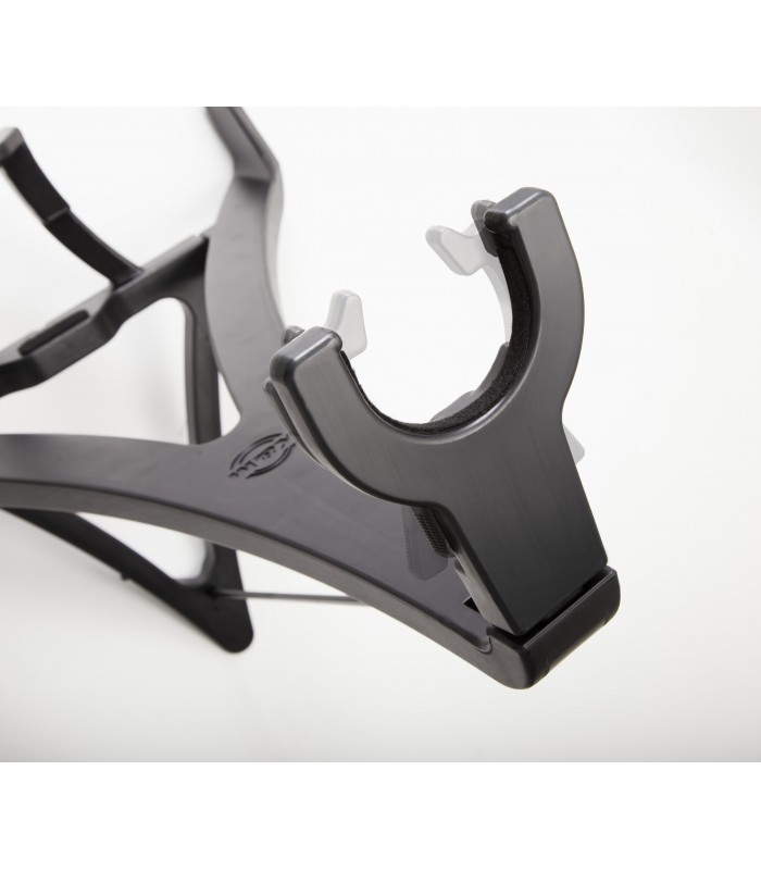 Stojak nadaje się do wszystkich rodzajów lakierów gitarowych, w tym lakieru nitro. Funkcjonalna blokada szyi zapewnia bezpieczne trzymanie, gdy gitara jest umieszczona na stojaku.