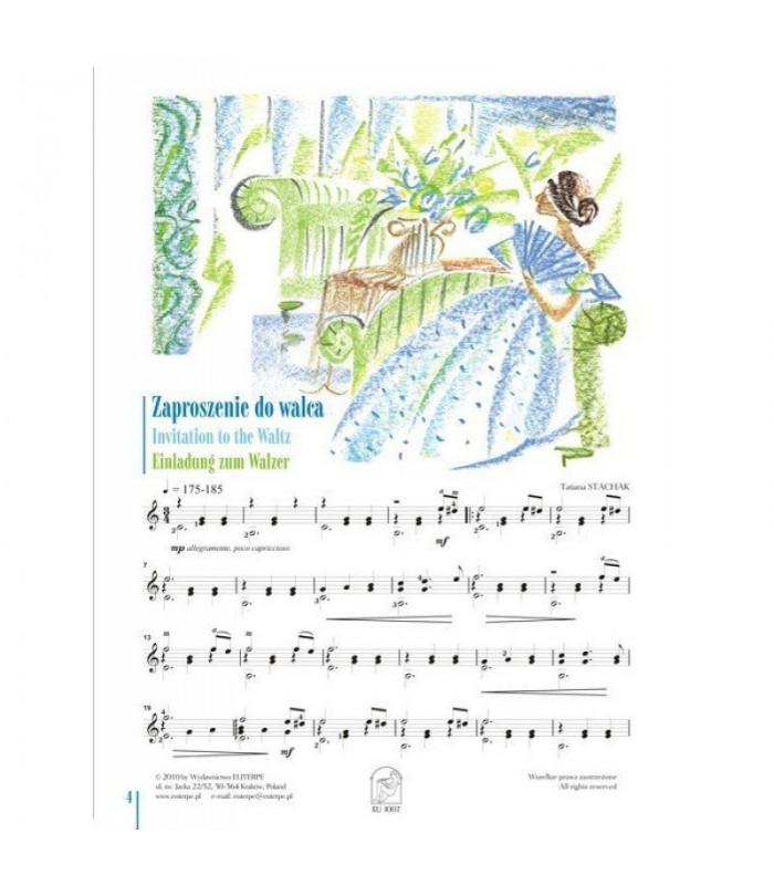 Zaproszenie do walca to pełna różnorodności kolekcja utworów, której autorzy, czerpiąc z różnych stylów i inspiracji, stworzyli czternaście wyjątkowych kompozycji. Walce, od romantycznych po latynoamerykańskie rytmy, tworzą pulsującą i taneczną mozaikę daleką od monotonii. Zróżnicowane tempo, charakter i style sprawiają, że każdy utwór to unikalna podróż muzyczna